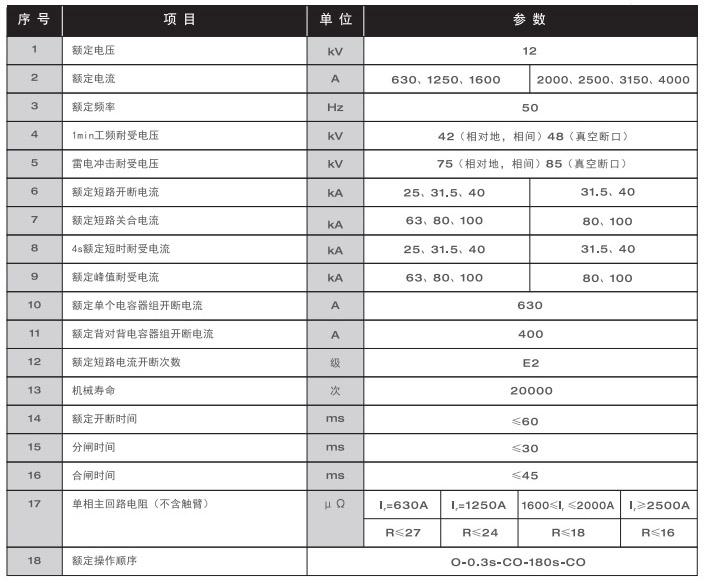 WL-r系列真空断路器遵循如下标准: