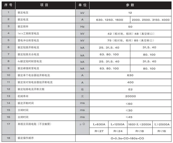 WL-r系列真空断路器遵循如下标准: